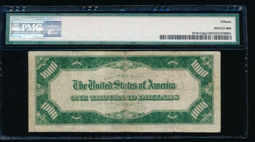 One 1928 $1000 Chicago Federal Reserve Note PMG 15.