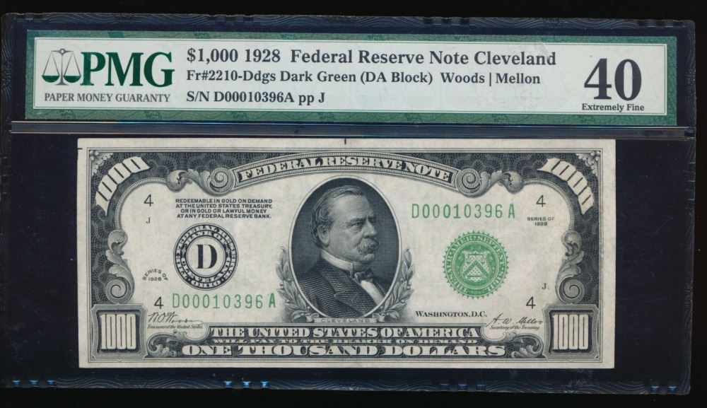 One 1928 $1000 Cleveland Federal Reserve Note PMG 40.