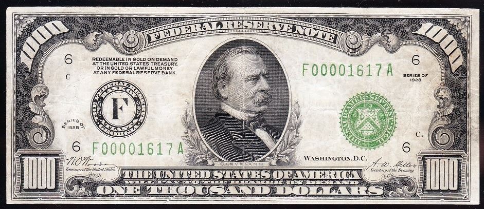 One 1928 $1000 Low Serial Atlanta Gold Clause FRN.