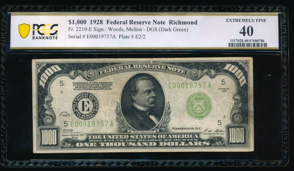One 1928 $1000 Richmond FRN PCGS 40.