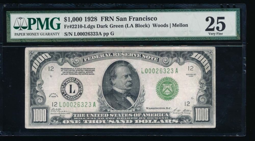 One 1928 $1000 San Francisco Federal Reserve Note PMG 25.