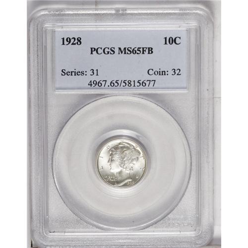 1928 10C MS65 Full Bands PCGS. Crisply struck with app