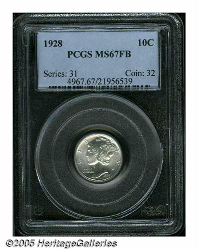 1928 10C MS67 Full Bands PCGS. At the MS67 level,