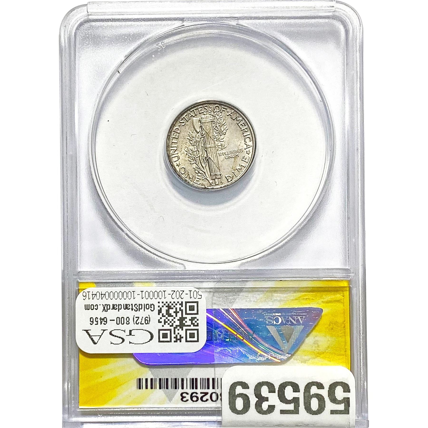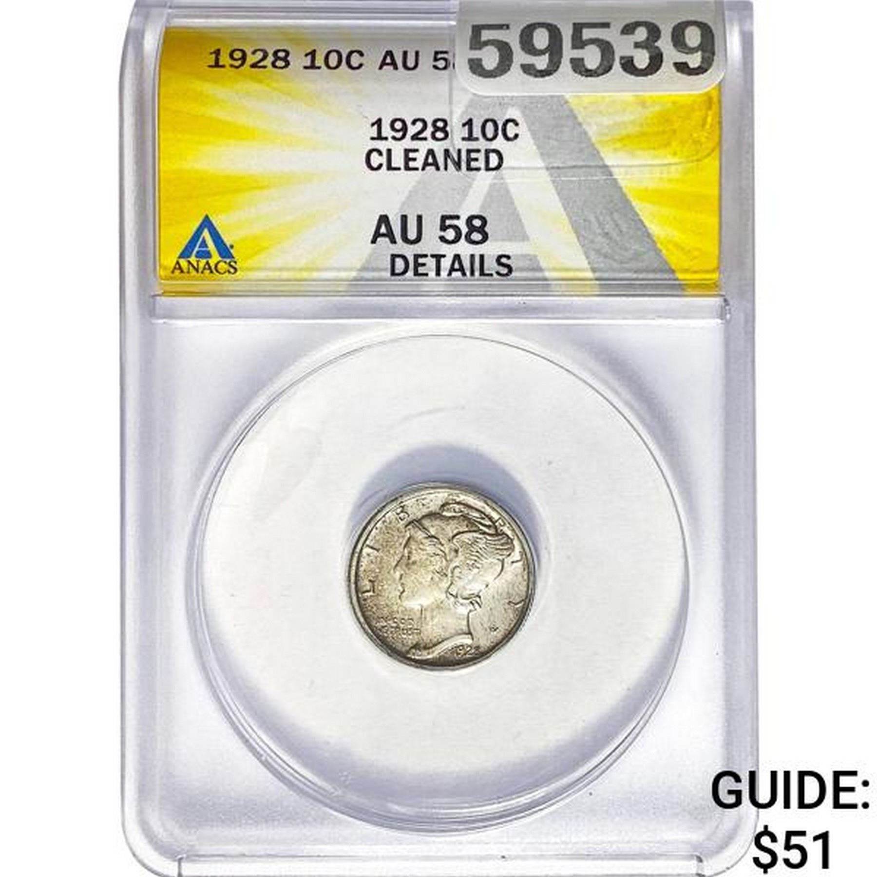 1928 10C Mercury Dime ANACS AU58 Details