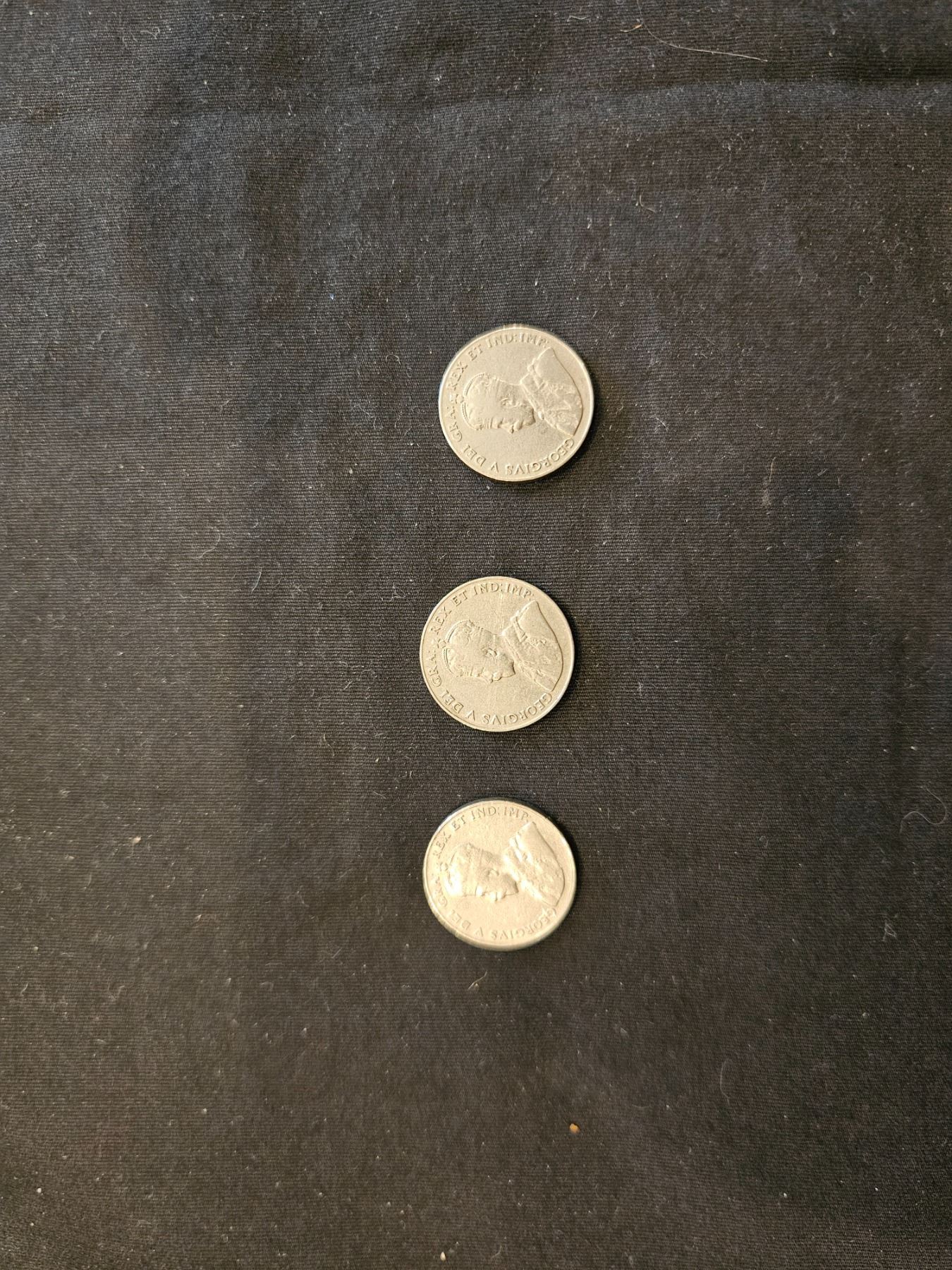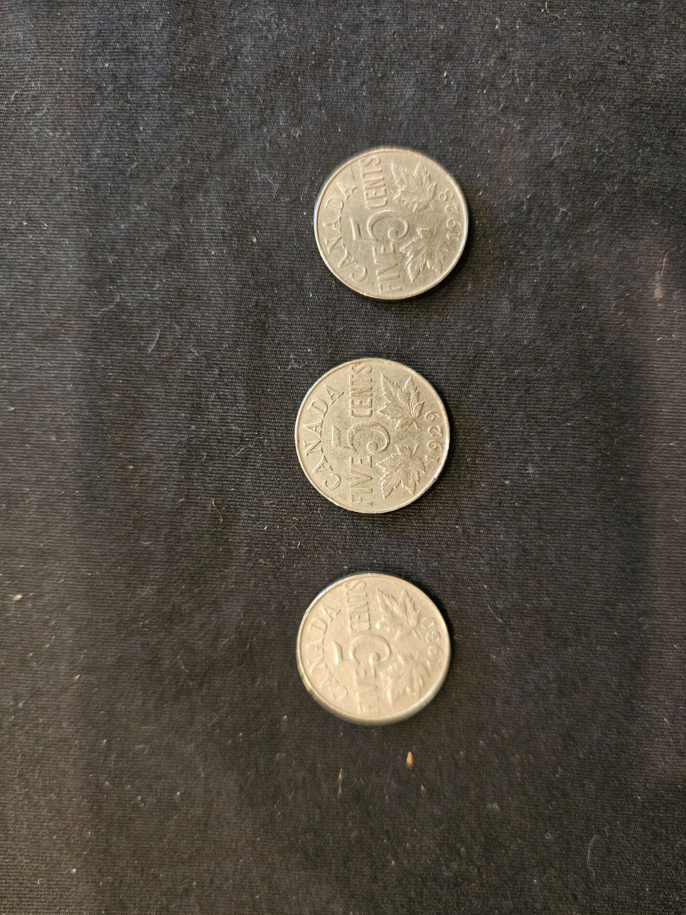 1928, 1929 & 1930 Canadian nickels