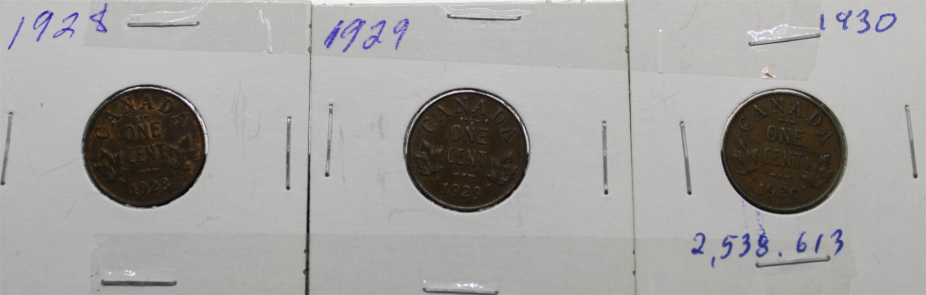 1928 1929 1930 SMALL CANADA ONE CENT COINS