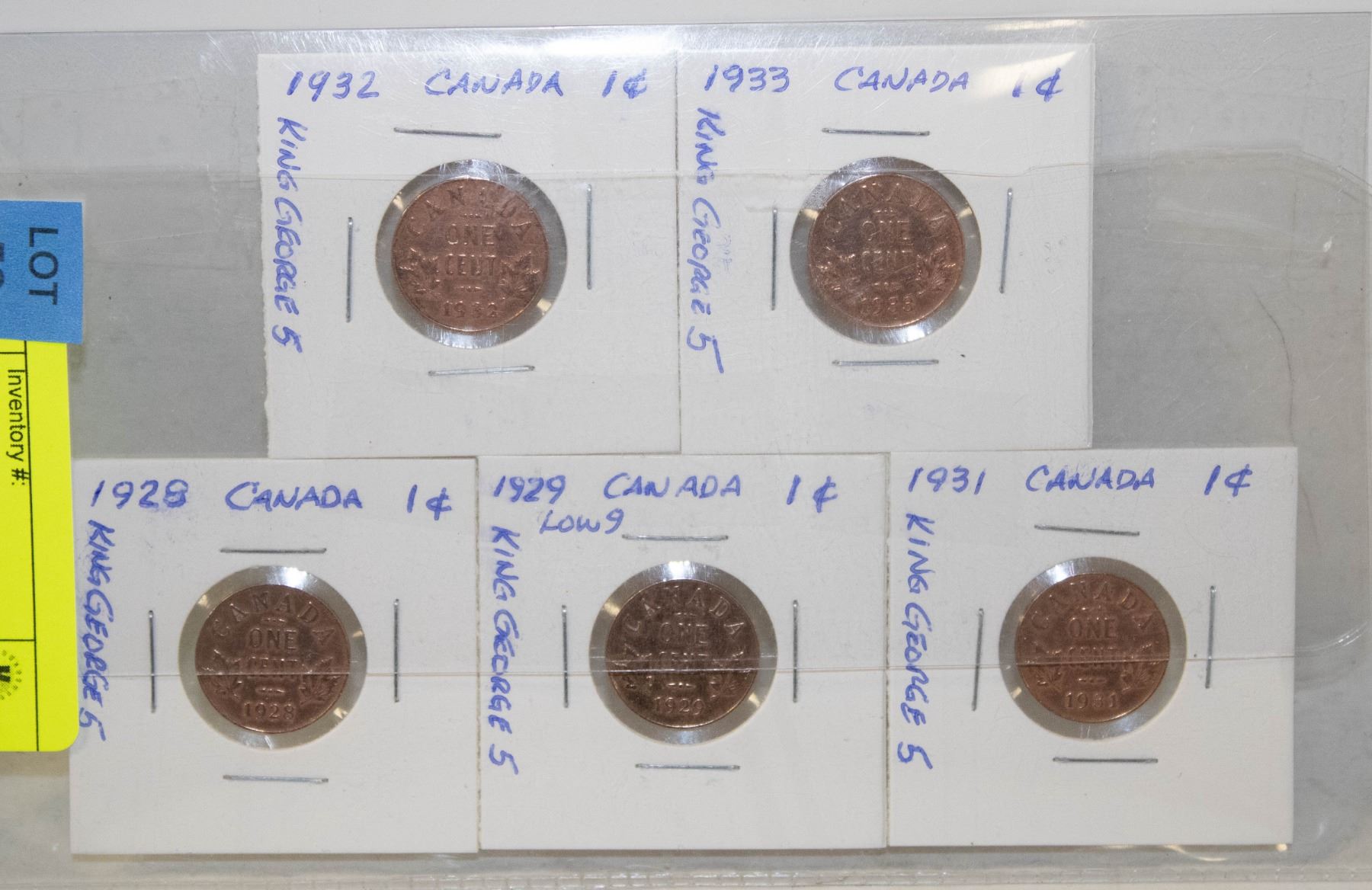 1928, 1929, 1931, 1932, 1933 CANADA 1 CENT COINS