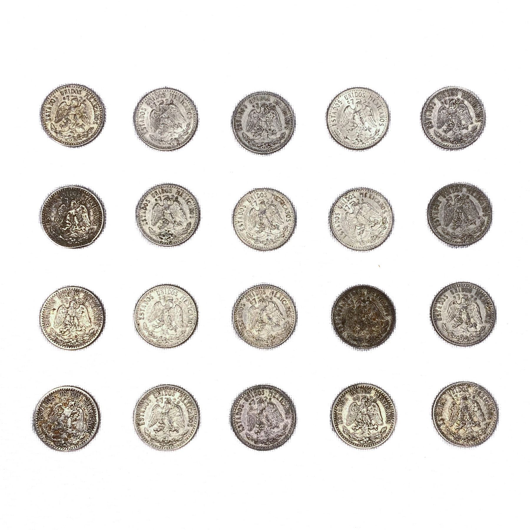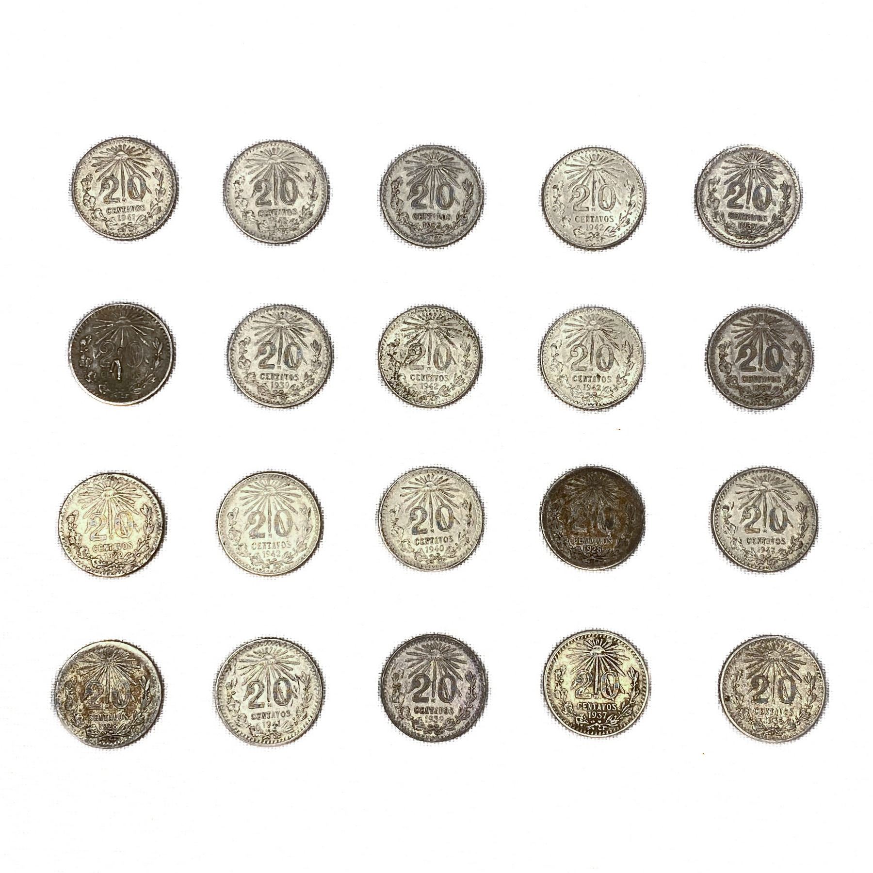 1928-1942 MX Silver 20 Centavos (20 Coins)