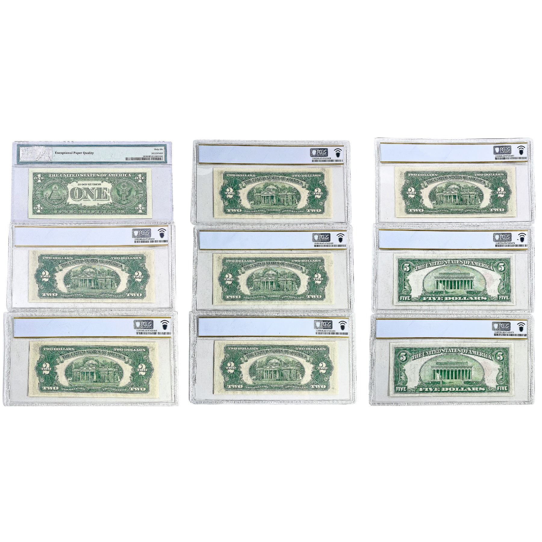 f. Notes sold referencing a third-party grading service are sold "AS IS" without any express or implied warranty, except for guarantee by GSA that they are genuine. Grading, condition or other attributes of any Product may have a material effect on its value and the opinion of others, including third-party grading services such as PCGS Currency and PMG may differ with that of GSA. GSA shall not be bound by any prior or subsequent opinion, determination, or certification by any grading service. Bidders specifically waive any claim to right of return of any Product because of the opinion, determination, or certification, or lack thereof, by any grading service. Certain warranties may be available from the grading services and Bidders are referred to them for further details: Paper Money Guaranty (PMG), PO Box 4711, Sarasota, FL 34230; PCGS Currency, PO Box 10470, Peoria, IL 61612-0470; PCGS Gold Shield, PO Box 9458, Newport Beach, CA 92658. Third-party graded notes are not returnable for any reason whatsoever.