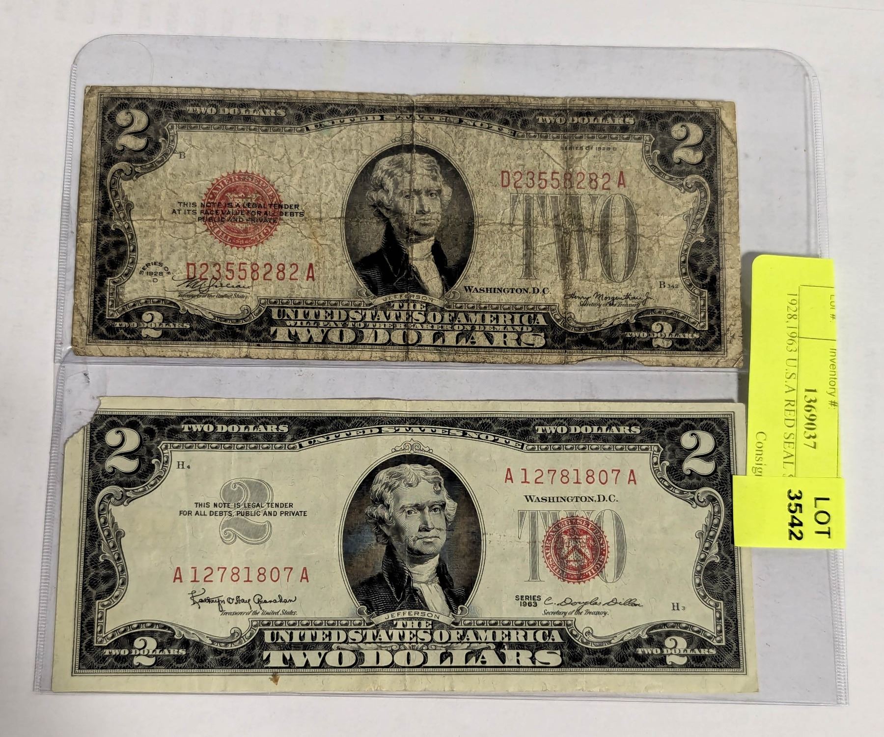 1928,1963 U.S.A RED SEAL $2 BILLS
