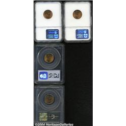 <B>1928<1C> MS65 Red and Brown PCGS,</B></I> a lustrous Gem with rose and gold hues, green label holder; <B>1942-D MS67 Red NGC,</B></I> well struck, vibrant orange color, booming luster; <B>1945-D MS66 Red PCGS,</B></I> crisply struck and highly lustrous, lovely red-orange color; and a <B>1945-S MS67 Red NGC,</B></I> knob S mintmark, a nicely struck and lustrous orange-gold Superb Gem. 4 coins <BR><BR><B>Important notice:</B> Heritage usually auctions material at the rate of 200-250 lots per hour. On some occasions eBay Live bid software or the Internet may not be able to keep up with the pace of the auction. We recommend placing a realistic absentee bid now as insurance to avoid disappointment. Occasionally the auctioneer may eliminate or reject an eBay Live bid, and the auctioneer may also reopen a lot after the close of the eBay live bidding (usually because we missed an audience bid), and may reject your bid even if it shows you as the winning bidder. By bidding via eBay Live, you agree that Heritage may award the lot to another bidder at its sole discretion under the circumstances described above or any other reasonable circumstances. Since eBay bids are not shown to us until we open the lot on the floor, we treat those bids just like floor bids. In most cases the floor responds before the eBay bid is presented to us, due to Internet lag time, so for consistency we have made it a policy that floor bids are always considered first over tie eBay live bids. Also please note that all Heritage lots purchased through eBay Live carry a 20% Buyer's Premium. Please make sure you read the Terms and Conditions before you bid.