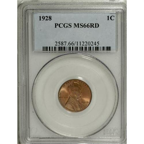 <B>1928 1C MS66 Red PCGS.</B></I> PCGS Population (302/53). NGC Census: (105/14). Mintage: 134,116,000. Numismedia Wsl. Price for NGC/PCGS coin in MS66: $400. (#2587)<BR><BR><b>Shipping:</b> Coins & Currency (<a target="_blank" href="http://www.heritageauctions.com/common/shipping.php">view shipping information</a>)