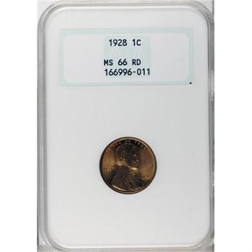 <B>1928 1C MS66 Red NGC.</B></I> NGC Census: (105/14). PCGS Population (318/53). Mintage: 134,116,000. Numismedia Wsl. Price for NGC/PCGS coin in MS66: $425. (#2587)<BR><BR><B>Coin Engraver:</B> Victor D. Brenner<BR><BR><b>Shipping:</b> Coins & Currency (<a target="_blank" href="http://www.heritageauctions.com/common/shipping.php">view shipping information</a>)