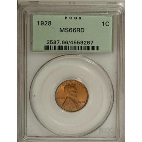 <B>1928 1C MS66 Red PCGS.</B></I> . PCGS Population (317/53). NGC Census: (105/14). Mintage: 134,116,000. Numismedia Wsl. Price for NGC/PCGS coin in MS66: $400. (#2587)<BR><BR><B>Coin Engraver:</B> Victor D. Brenner<BR><BR><b>Shipping:</b> Coins & Currency (<a target="_blank" href="http://www.heritageauctions.com/common/shipping.php">view shipping information</a>)