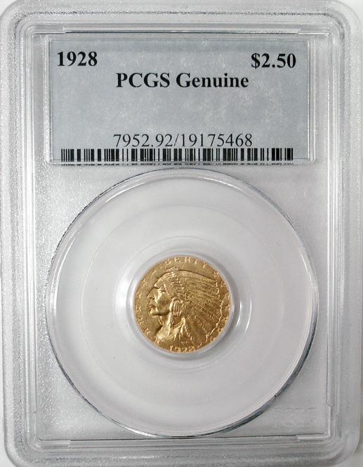 1928 $2 1/2 GOLD PCGS GENUINE would grade a 61