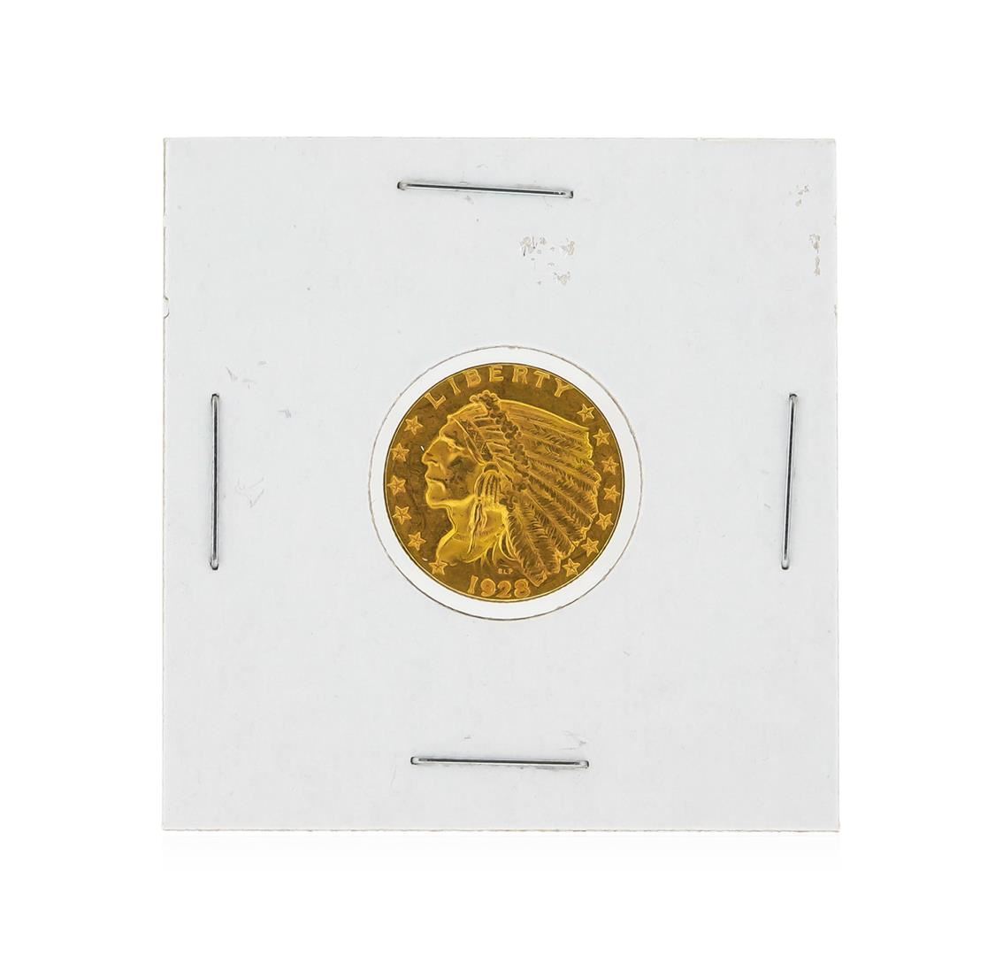 One 1928 $2 1/2 Indian Head Quarter Eagle Gold Coin BU.