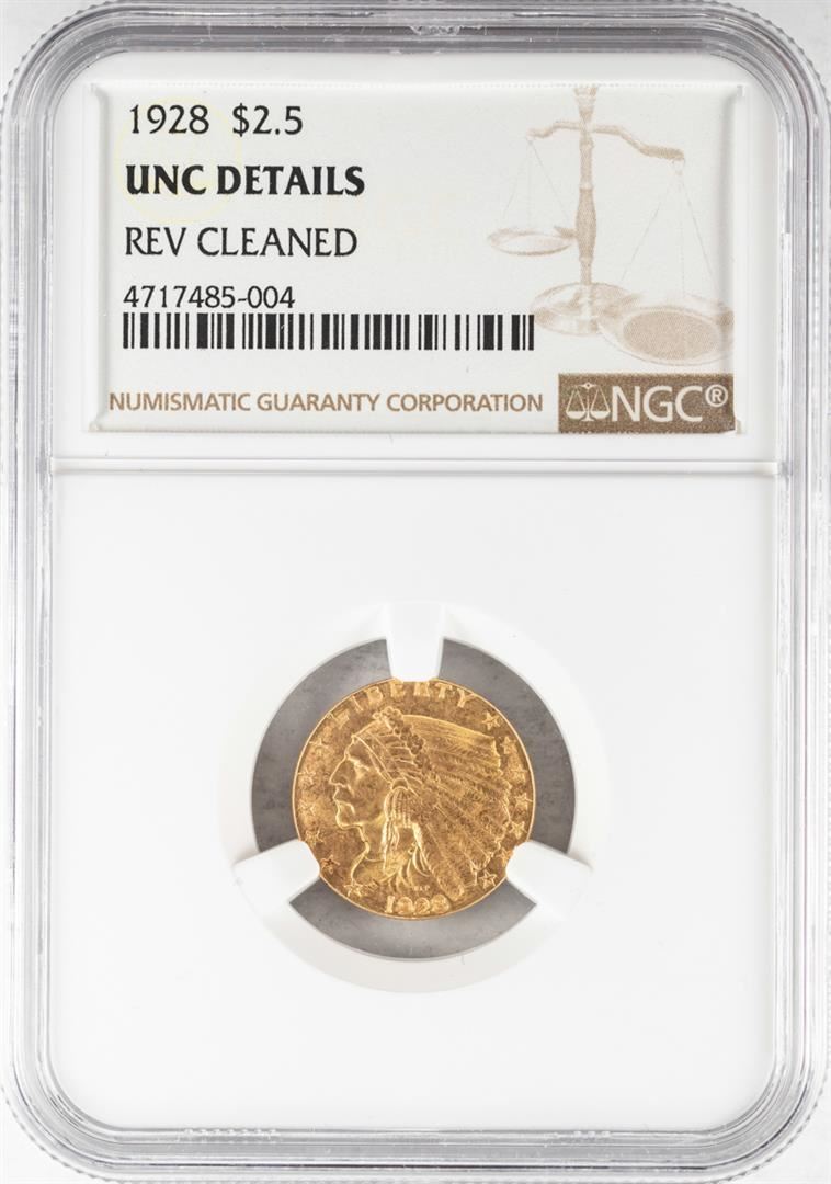 One 1928 $2 1/2 Indian Head Quarter Eagle Gold Coin NGC Unc Details. NGC Certified.