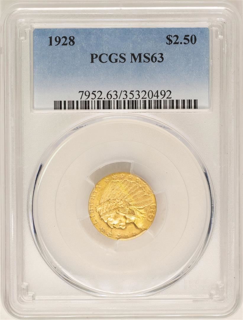 One 1928 $2 1/2 Indian Head Quarter Eagle Gold Coin PCGS MS63. PCGS Graded.