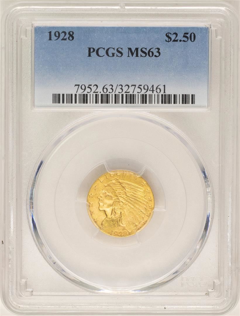 One 1928 $2 1/2 Indian Head Quarter Eagle Gold Coin PCGS MS63. PCGS Graded.