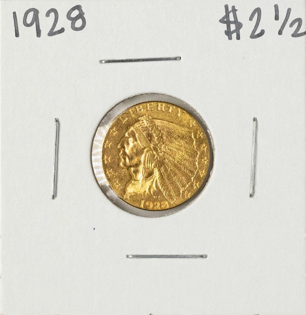 One 1928 $2 1/2 Indian Head Quarter Eagle Gold Coin.