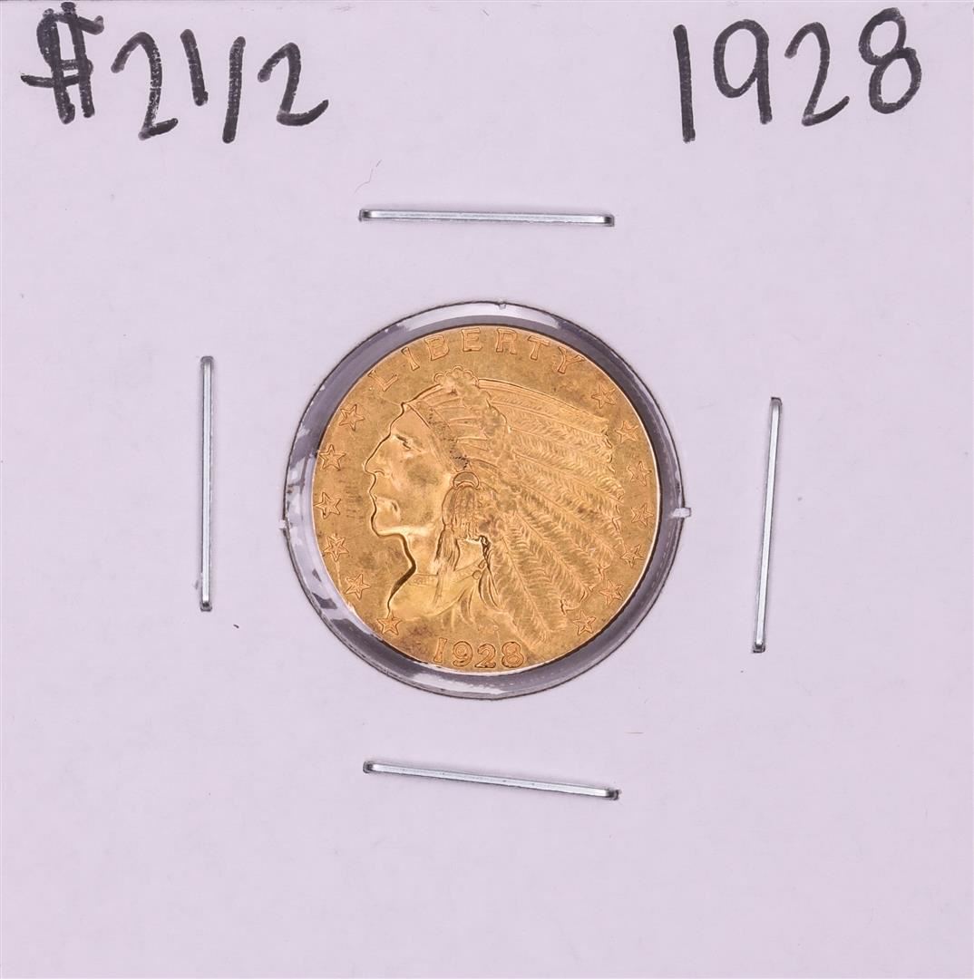 One 1928 $2 1/2 Indian Head Quarter Eagle Gold Coin.