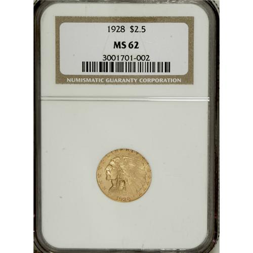 <B>1928 $2 1/2 MS62 NGC.</B></I> NGC Census: (3685/5073). PCGS Population (2315/3417). Mintage: 416,000. Numismedia Wsl. Price: $490. (#7952)<BR><BR><b>Shipping:</b> Coins & Currency (<a target="_blank" href="http://www.heritageauctions.com/common/shipping.php">view shipping information</a>)