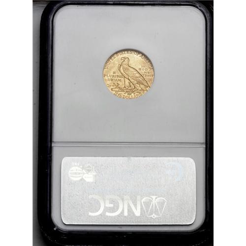 <B>1928<$2 1/2> MS62 NGC.</B></I> The penultimate Indian quarter eagle issue, here represented by a khaki-gold piece with glints of deep orange. This example appears quite pristine and well struck for the assigned grade, and would make a good type set candidate for someone who wants to stay out of Gem territory.