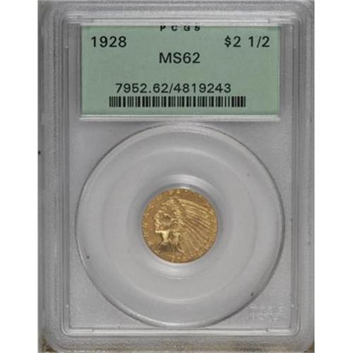 <B>1928 $2 1/2 MS62 PCGS.</B></I> PCGS Population (2486/3679). NGC Census: (4049/5546). Mintage: 416,000. Numismedia Wsl. Price for NGC/PCGS coin in MS62: $440. (#7952)<BR><BR><B>Coin Engraver:</B> Bela Lyon Pratt<BR><BR><b>Shipping:</b> Coins & Currency (<a target="_blank" href="http://www.heritageauctions.com/common/shipping.php">view shipping information</a>)