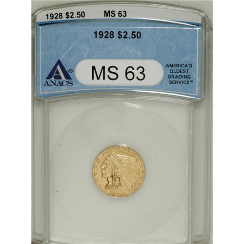 1928 $2 1/2 MS63 ANACS. NGC Census: (3085/2041). P