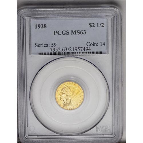 1928 $2 1/2 MS63 PCGS. A lovely example with attractiv 1928[$2 1/2] MS63 PCGS.