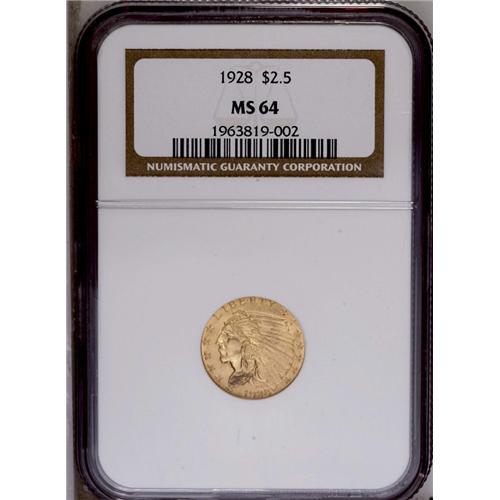 "1928 $2 1/2 MS64 NGC. Bright, well fros"