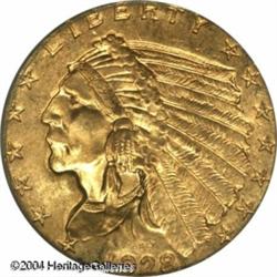 1928 $2 1/2 MS65 PCGS. Shimmering, impeccably pres <B>1928 $2 1/2 MS65 PCGS.</B></I> Shimmering, impeccably preserved surfaces are draped in attractive orange patina. A terrific example of the Indian Quarter Eagle design. Population: 231 in 65, only 10 finer (10/04). <BR><BR><B>Important notice:</B> Heritage usually auctions material at the rate of 200-250 lots per hour. On some occasions eBay Live bid software or the Internet may not be able to keep up with the pace of the auction. We recommend placing a realistic absentee bid now as insurance to avoid disappointment. Occasionally the auctioneer may eliminate or reject an eBay Live bid, and the auctioneer may also reopen a lot after the close of the eBay live bidding (usually because we missed an audience bid), and may reject your bid even if it shows you as the winning bidder. By bidding via eBay Live, you agree that Heritage may award the lot to another bidder at its sole discretion under the circumstances described above or any other reasonable circumstances. Since eBay bids are not shown to us until we open the lot on the floor, we treat those bids just like floor bids. In most cases the floor responds before the eBay bid is presented to us, due to Internet lag time, so for consistency we have made it a policy that floor bids are always considered first over tie eBay live bids. Also please note that all Heritage lots purchased through eBay Live carry a 20% Buyer's Premium. Please make sure you read the Terms and Conditions before you bid. This lot is being auctioned in conjunction with a live floor auction by Heritage Galleries & Auctioneers. All final auction and invoice information will be supplied by Heritage Galleries & Auctioneers, and all other information should be considered preliminary. Lot:6583