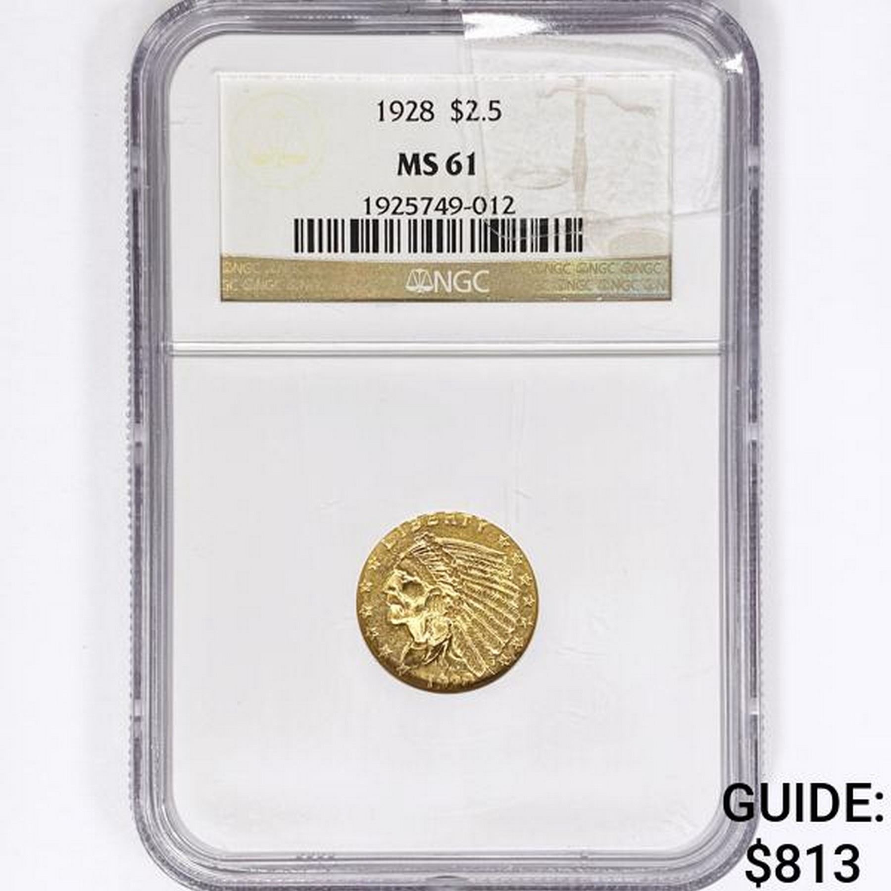 1928 $2.50 Gold Quarter Eagle NGC MS61