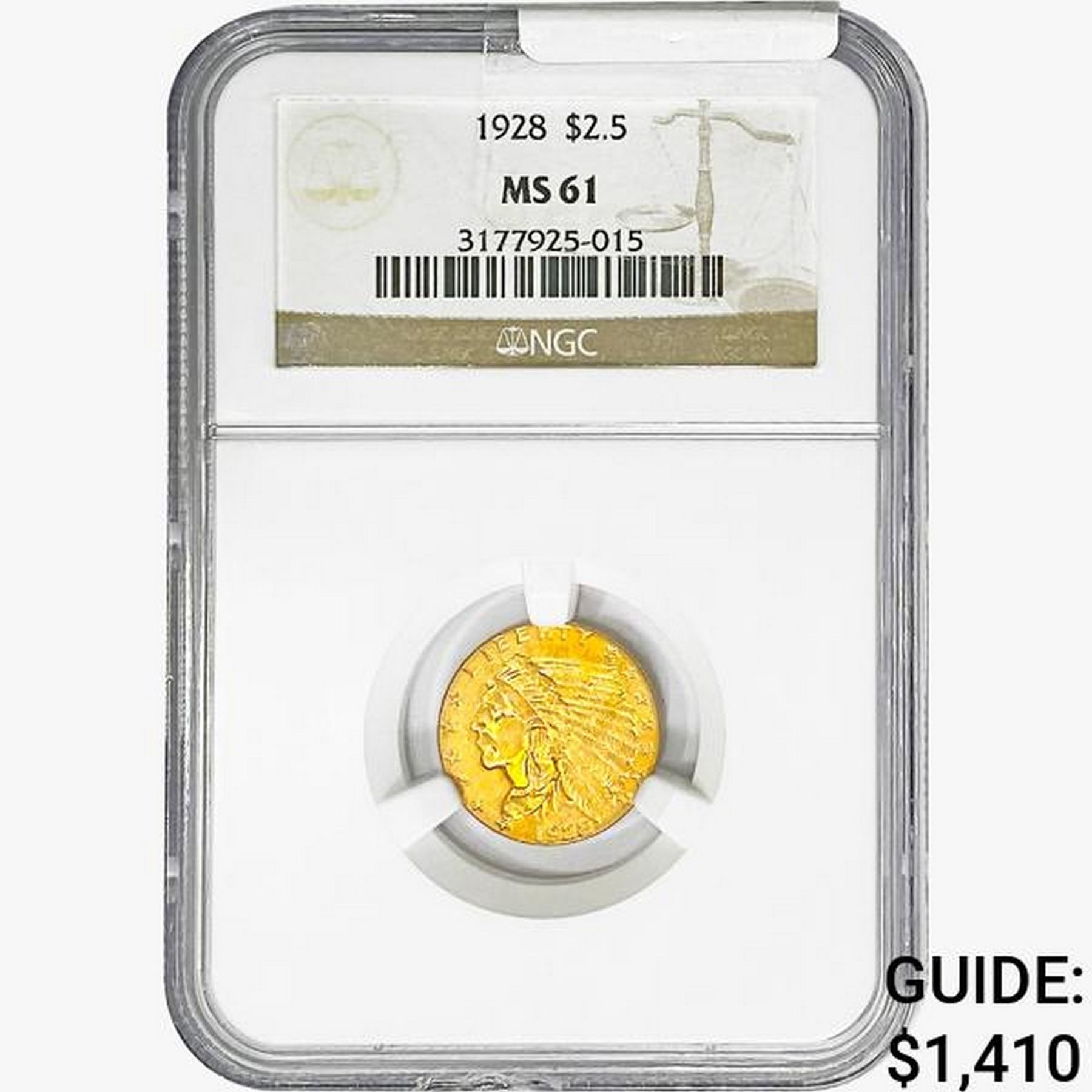 1928 $2.50 Gold Quarter Eagle NGC MS61