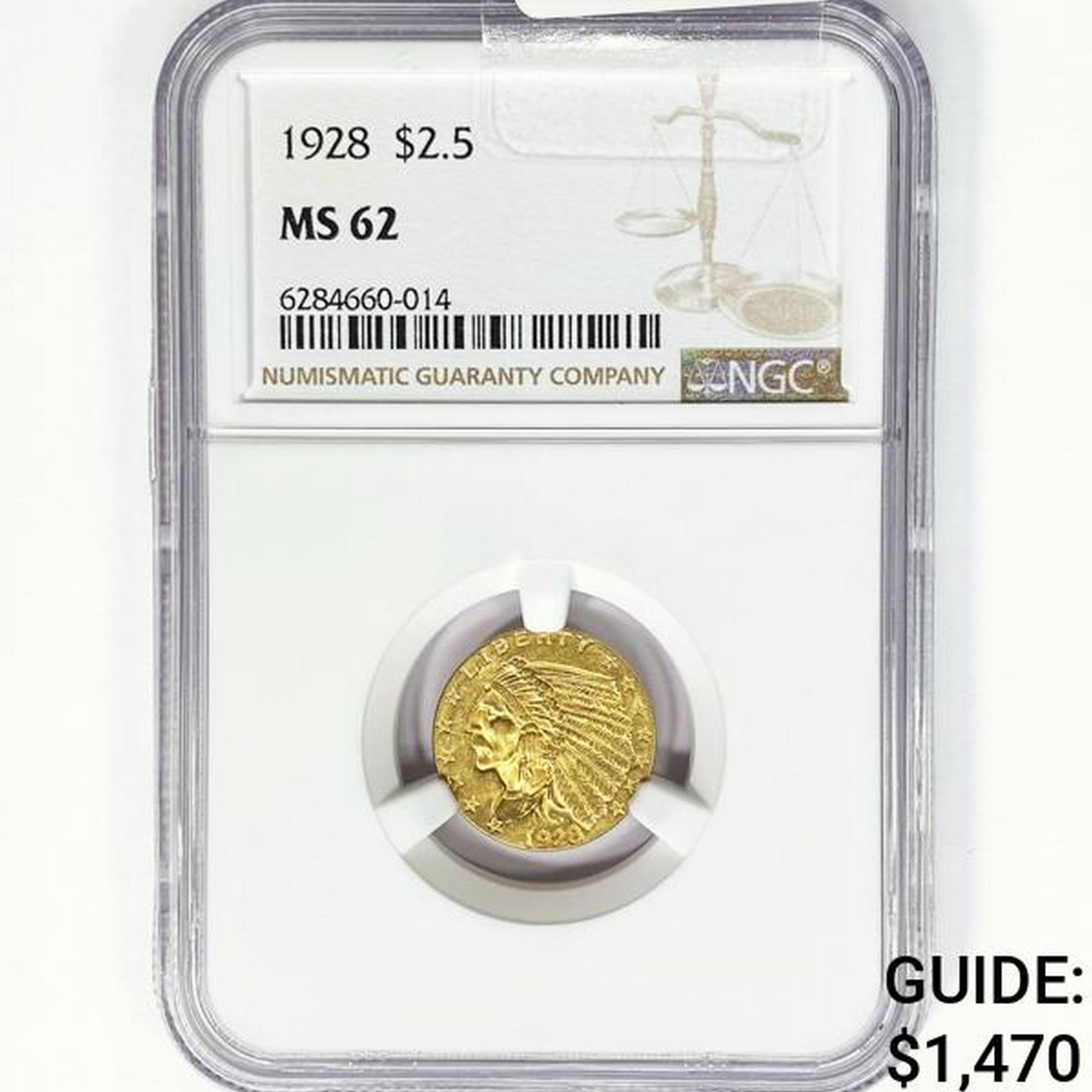 1928 $2.50 Gold Quarter Eagle NGC MS62
