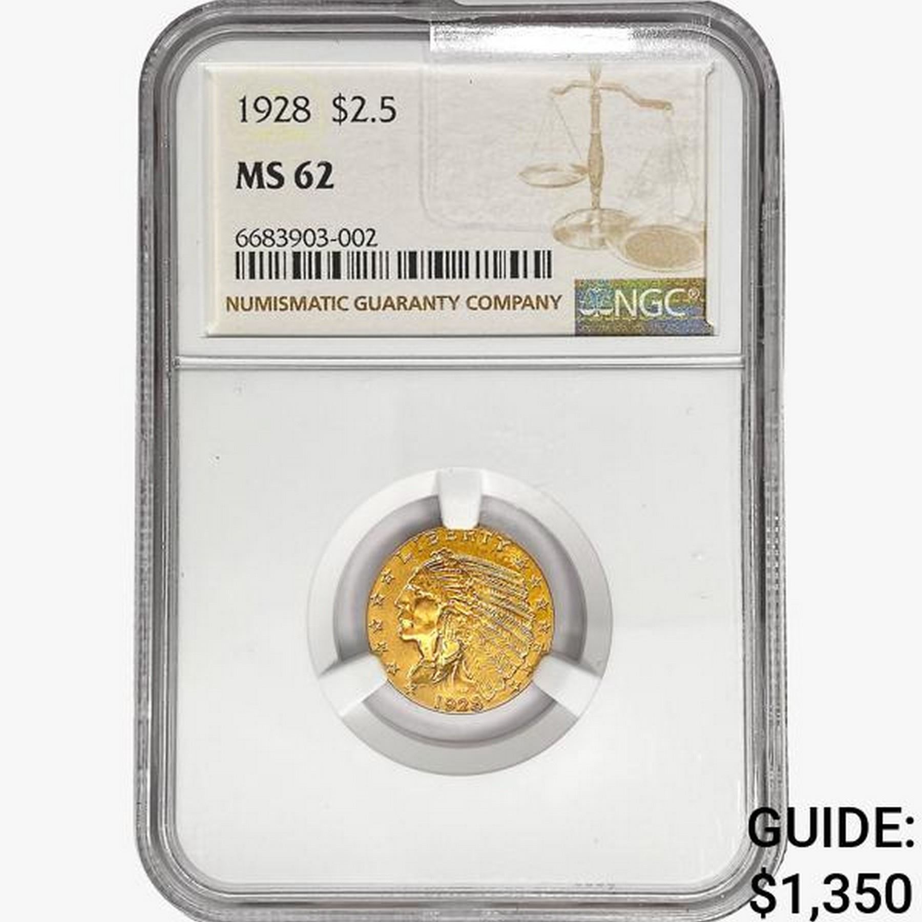 1928 $2.50 Gold Quarter Eagle NGC MS62