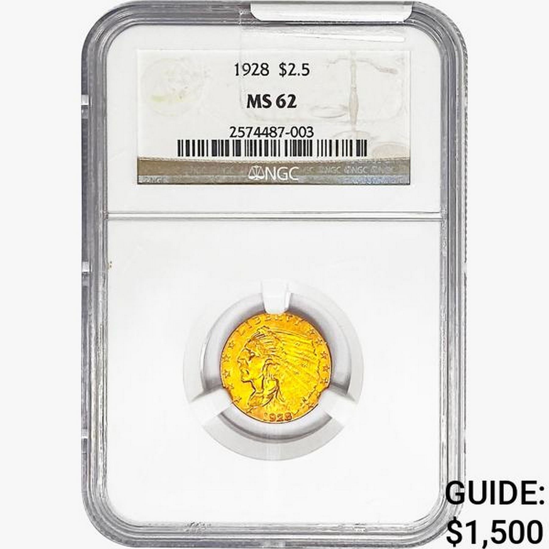 1928 $2.50 Gold Quarter Eagle NGC MS62
