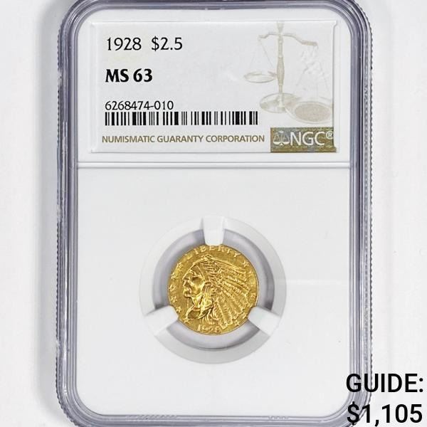 1928 $2.50 Gold Quarter Eagle NGC-MS63