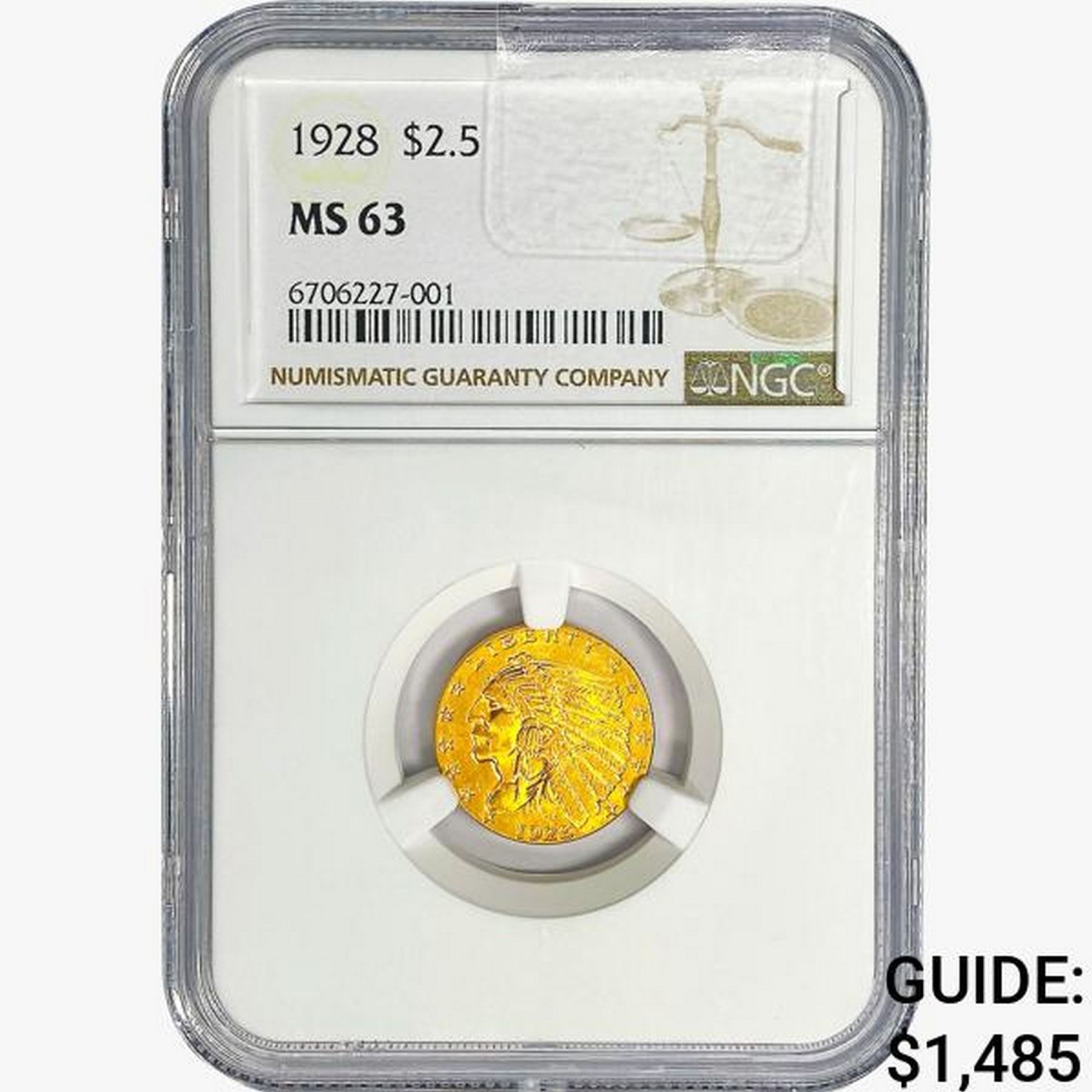 1928 $2.50 Gold Quarter Eagle NGC MS63