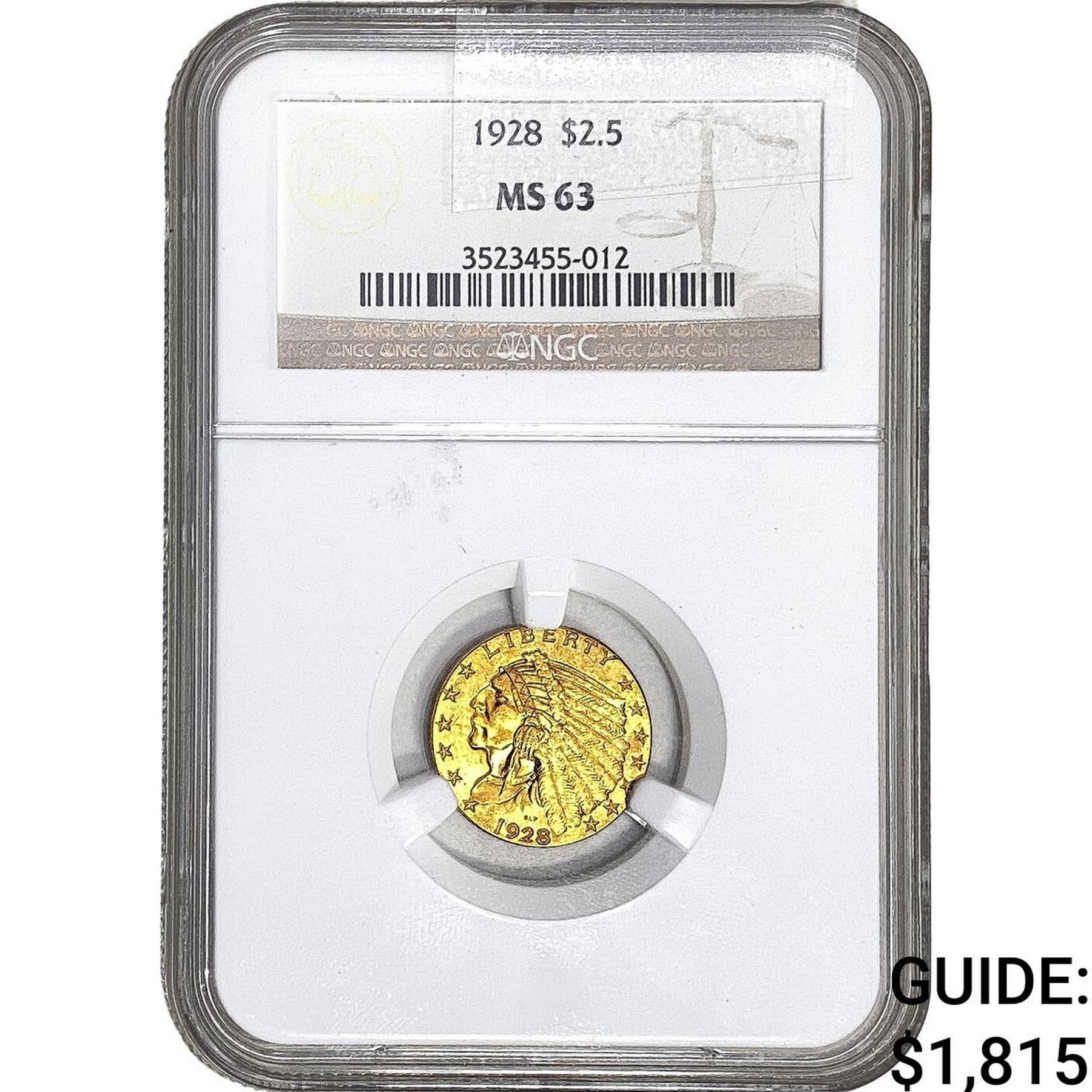 1928 $2.50 Gold Quarter Eagle NGC MS63