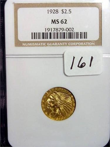 1928 $2.50 Indian Head Gold Coin NGC MS 62
