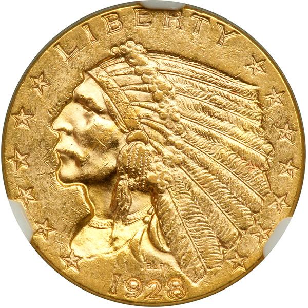 1928 $2.50 Indian. NGC graded MS-62 (PCGS # 7952) .