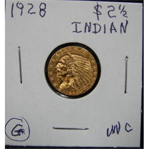 1928 $2 ½ INDIAN GOLD COIN. Unc.