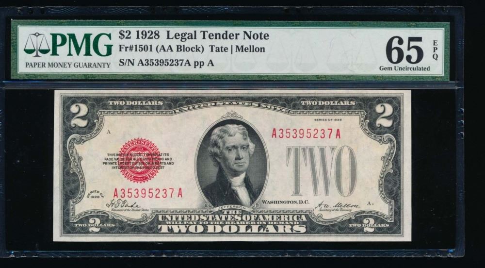 One 1928 $2 Legal Tender Note PMG 65EPQ.