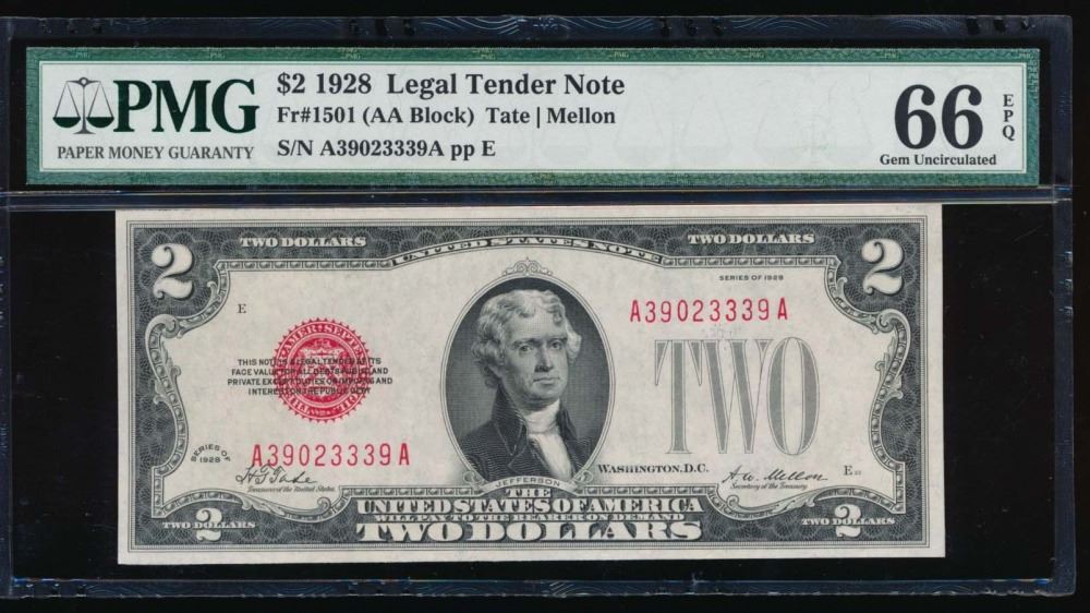 One 1928 $2 Legal Tender Note PMG 66EPQ.
