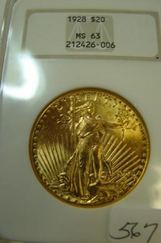 1928 $20.00 St. Gaudens Gold Coin NGC MS 63