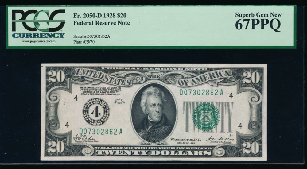 One 1928 $20 Cleveland Federal Reserve Note PCGS 67PPQ.