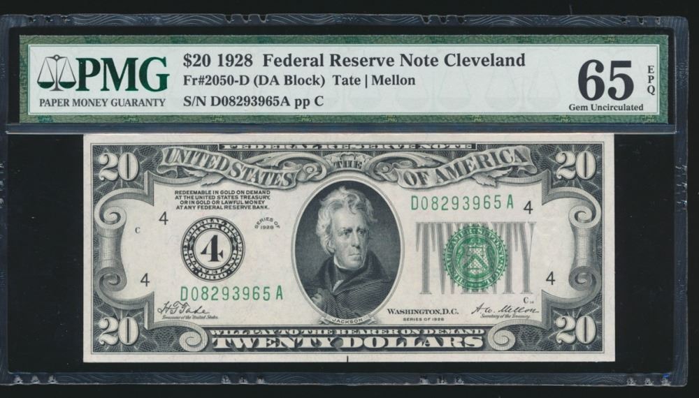 One 1928 $20 Cleveland Federal Reserve Note PMG 65EPQ.