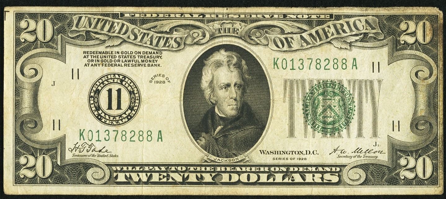 One 1928 $20 Dallas Federal Reserve Note.
