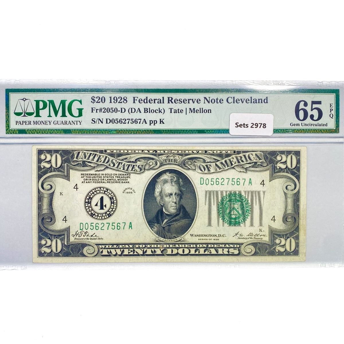1928 $20 Fed Reserve Note PMG GEM UNC 65